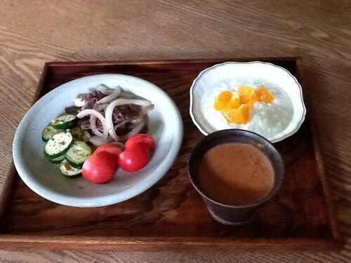 牛肉と新玉ねぎの炒め物、ズッキーニのニンニク炒め、ミニトマトと何時ものようにヨーグルトが朝食でした!!朝から牛肉とは豪華だなと思いながらズッキーニを食べた。ズッキーニは南瓜の一種でつるが無くヘチマかキユウリの様な実がなる。庭や市民農園で何…