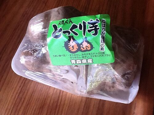 山芋には長芋や自然薯の様に長いものから伊勢芋、丹波山の芋のように塊のものまで色々とある。みじかめの大和芋やいちょう芋その仲間にとっくり芋と言うのが有る。青森産のとっくり芋を買って来た。寸詰まりの徳利で種芋の様だ!!何個も入っているので一つ…